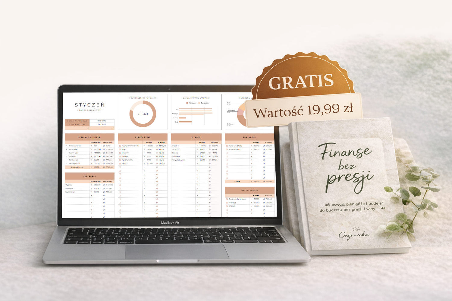 Kupując planer Organizka, otrzymujesz gotowy system do ogarniania finansów oraz ebook w prezencie z praktycznymi wskazówkami, jak mądrze zarządzać swoim budżetem. Wszystko dostajesz od razu po zakupie — bez czekania.